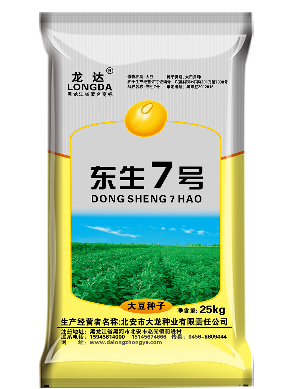 产品展示 大豆种子 化肥产品 农药产品 粮食贸易 品种名称: 东生7号 作物种类: 大豆种子 种子类别: 大田用种 种子生产经营许可证编号: C(黑)农种许字(2022)第2038号 审定编号: 黑审豆2012016 产品详细信息