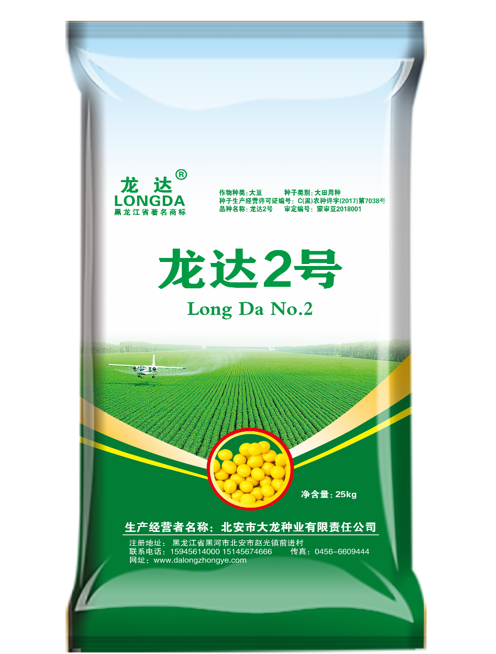 产品展示 大豆种子 化肥产品 农药产品 粮食贸易 品种名称: 龙达2号 作物种类: 大豆种子 种子类别: 大田用种 种子生产经营许可证编号: C(黑)农种许字(2022)第2038号 审定编号: 蒙审豆2018001 产品详细信息